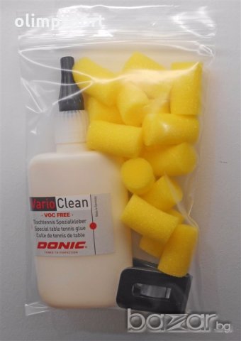 лепило Donic Vario Clean glue voc free ново на водна основа с щипка и тампони произведено в Германия